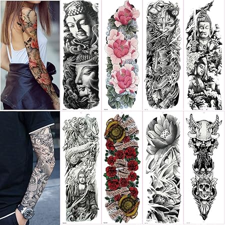 8 Sheets Grosse Tatowierungen Voller Arm Tattoo Armel Temporare Armel Tattoos Grosse Gefalschte Korperkunst Arm Brust Schulter Tattoo Schwarz Korper Aufkleber Fur Manner Frauen Karneval Fasching Party Amazon De Kuche Haushalt
