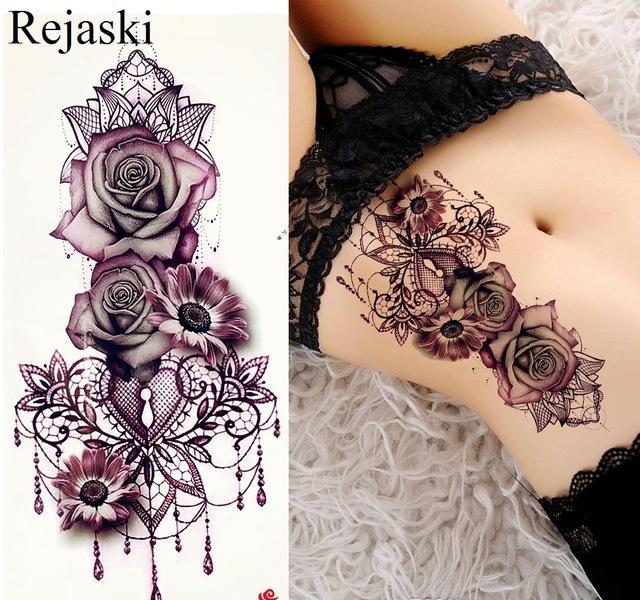 Tatuajes Temporales De Rosa Para Mujer Tatuajes Adhesivos De Arte Corporal A Prueba De Agua Con Flor Grande Negra Tatuajes Llamativos De 10 20cm Tatuajes Temporales Aliexpress